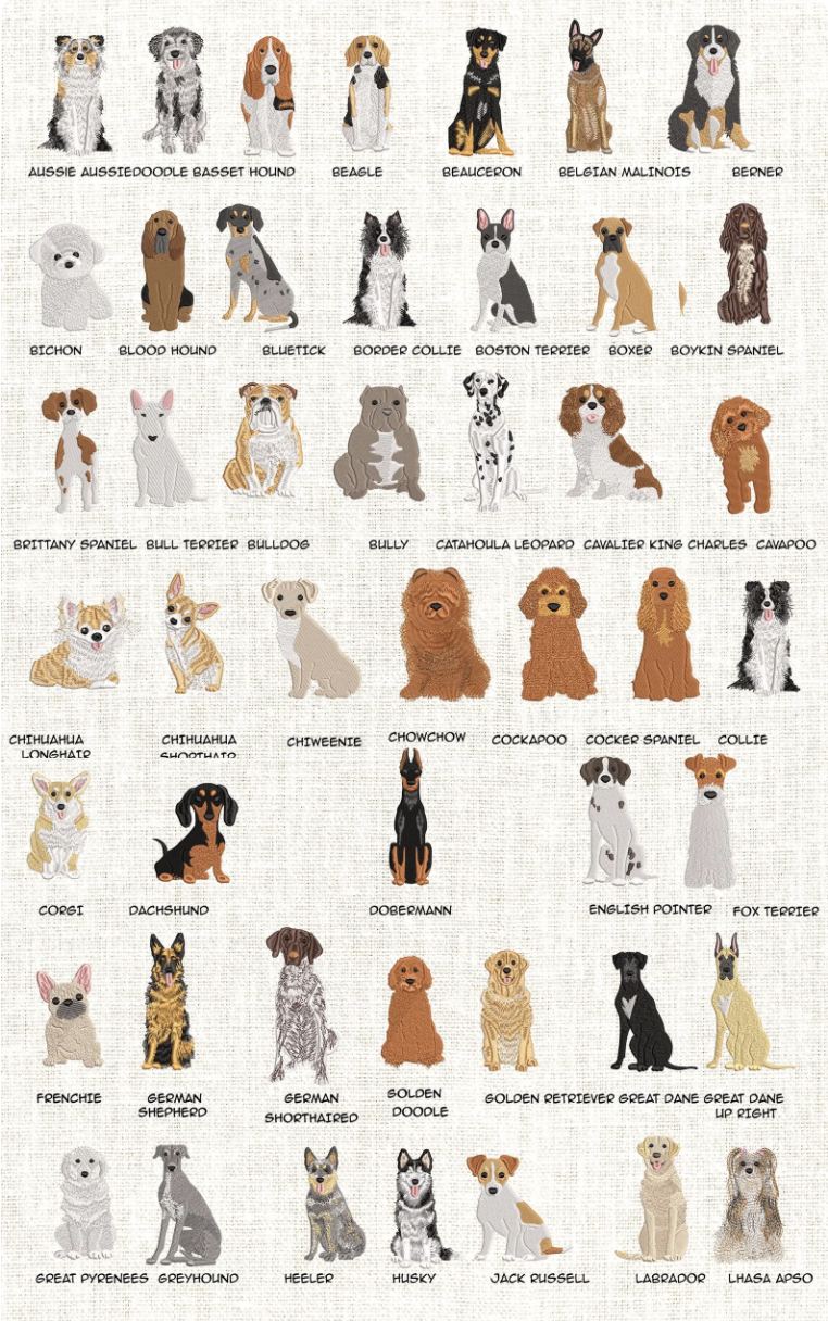 -Choose from multiple different kinds of embroidered dog silhouettes.