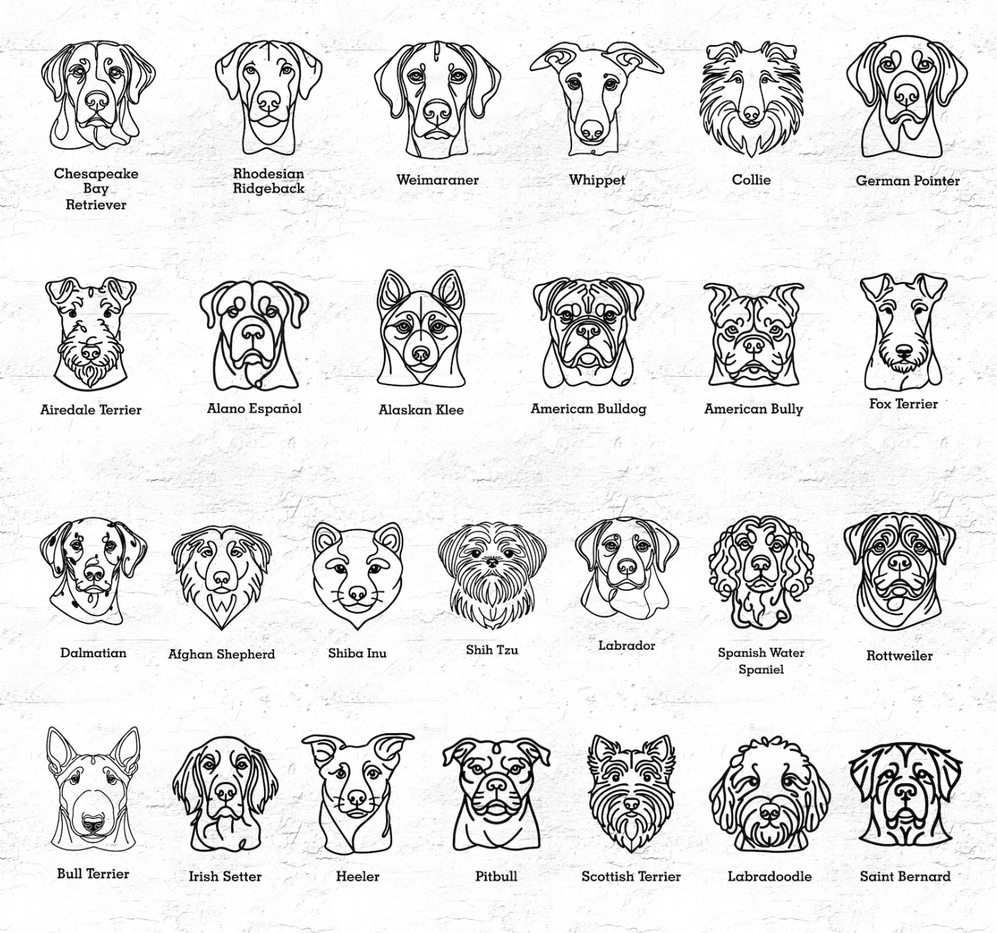 Please list your dog's breed, the text you'd like underneath, and the thread color for the text & dog's fur.