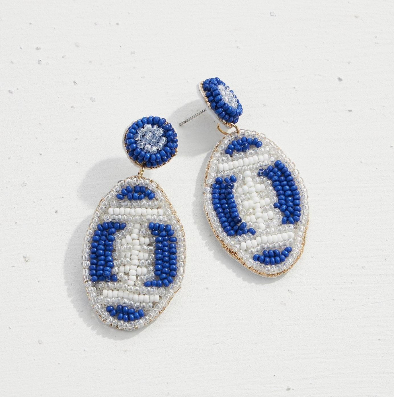 First Down Dangles Football Earrings- Blue/White