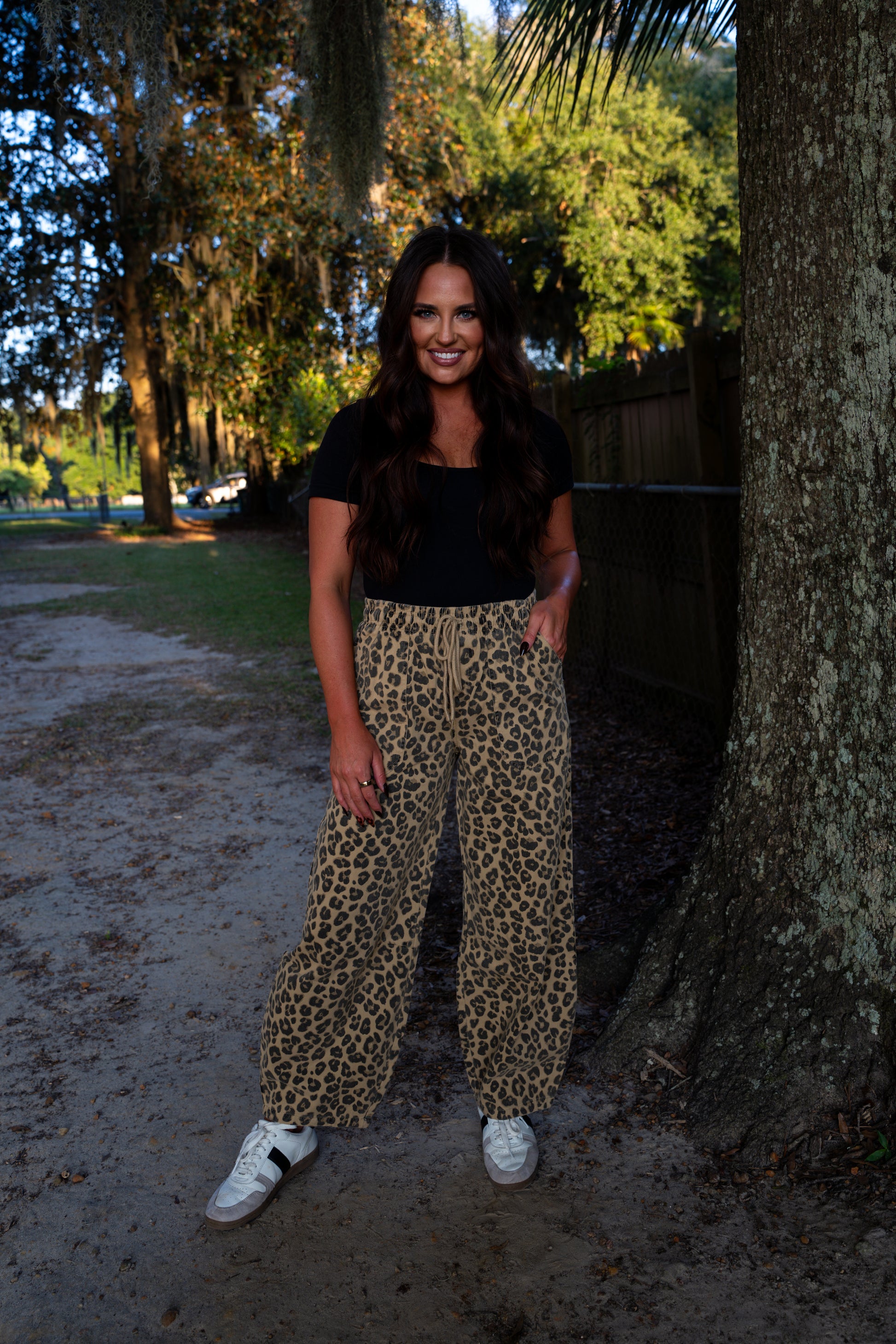 Take a walk on the wild side in these adorable cheetah print parachute pants- the perfect mix of style and comfort. Featuring a high-rise elastic, drawstring waist and a relaxed, lightweight fit, these pants are made for effortless outfits. Dress them up with a fun bodysuit and heels or keep it casual with a comfy tee and sneakers.