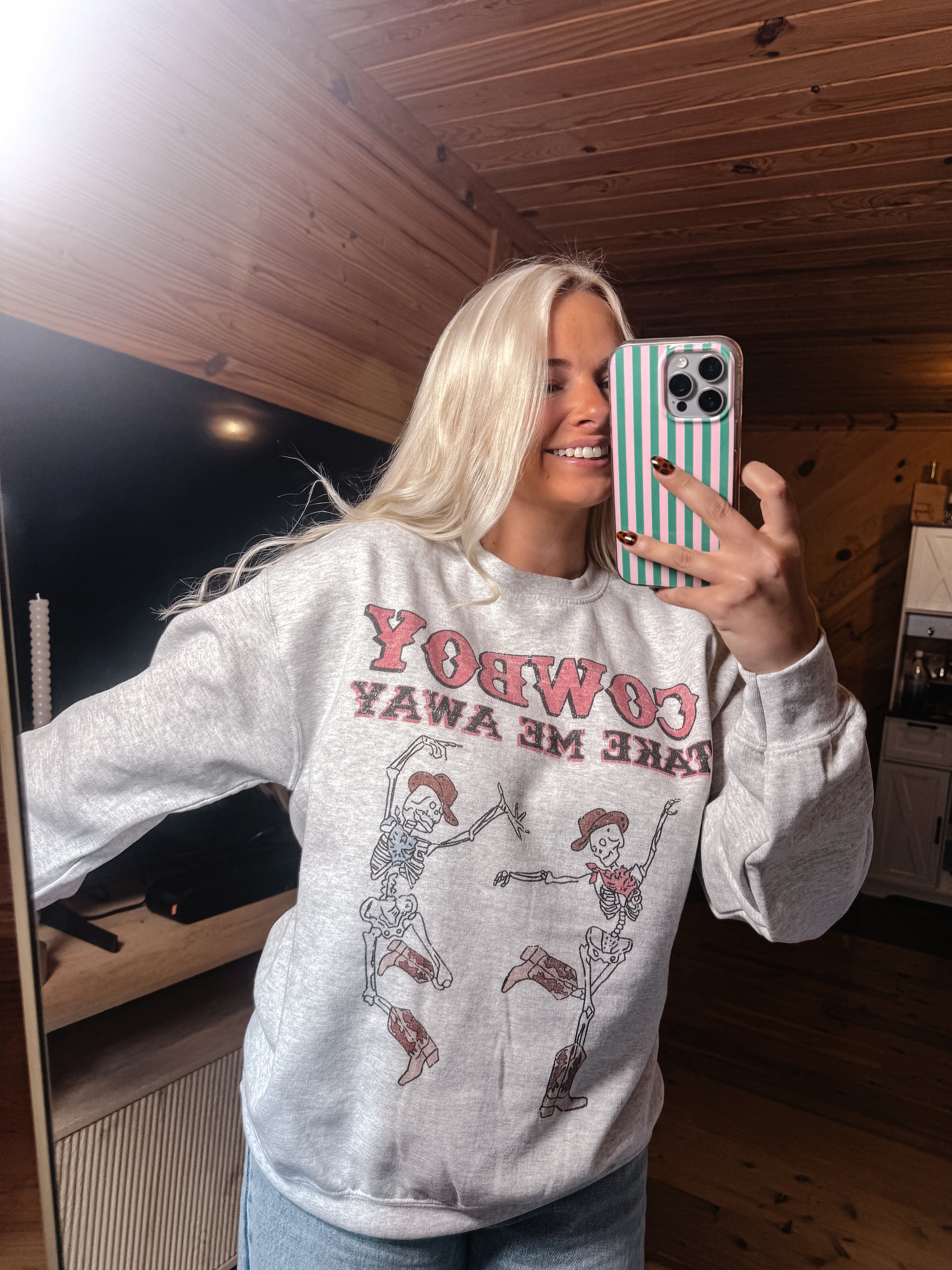A cowboy meets spooky season. Featuring a dancing skeleton cowboy with a bold western graphic, it's cozy, fun, and made for fall nights. Whether you're headed to a bonfire or pumpkin patch, dress this adorable crew up and down so many fun ways.