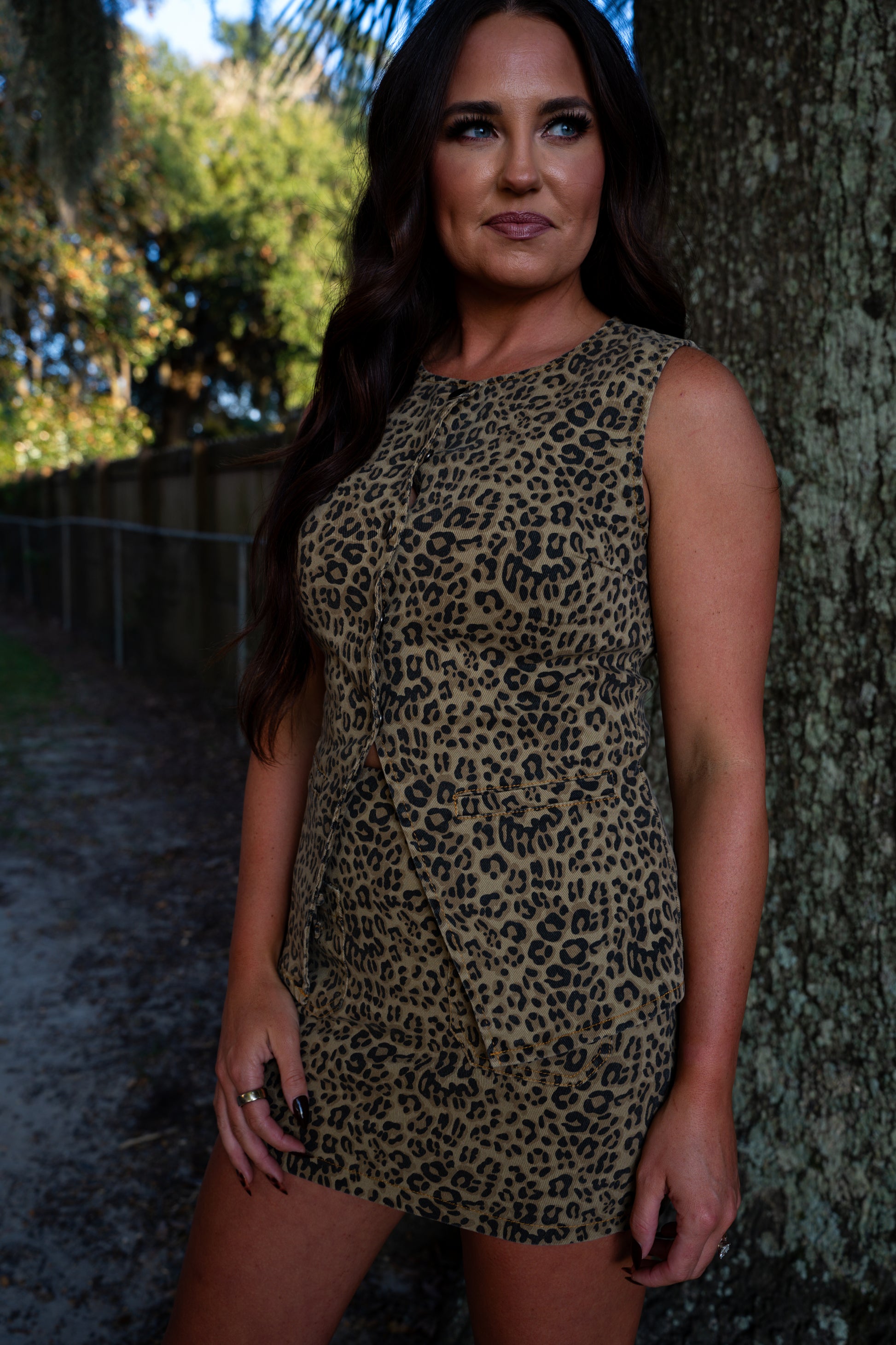 Unleash your wild side with The Erin Set- the perfect mix of bold and chic. Featuring a flattering mini length, front pocket detail, and playful bow trim on the skort, along with a fitted vest. Made with a soft cotton-spandex blend, it gives just the right amount of stretch for all day wear. Style it with your favorite boots for a to die for fall look.